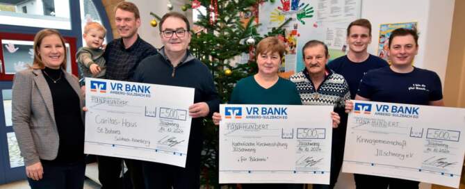 Das Caritashaus St. Barbara am Loderhof in Sulzbach-Rosenberg, die Gemeindebücherei Illschwang und die örtliche Kirwagemeinschaft können sich über eine Spende von jeweils 500 € freuen. Statt Weihnachtsgeschenken für die Kundschaft verteilt das Bauunternehmen Margraf in Illschwang jedes Jahr 1500 € an Gruppen oder Vereine, die wohltätige Zwecke leisten.
